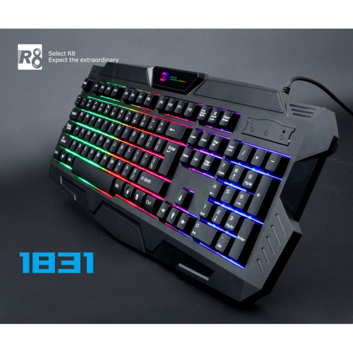 - Bàn Phím Chuyên Game LED 7 Màu R8-1831 được thiết kế theo phong cách game thủ với màu sắc lung linh, chuyên nghiệp.