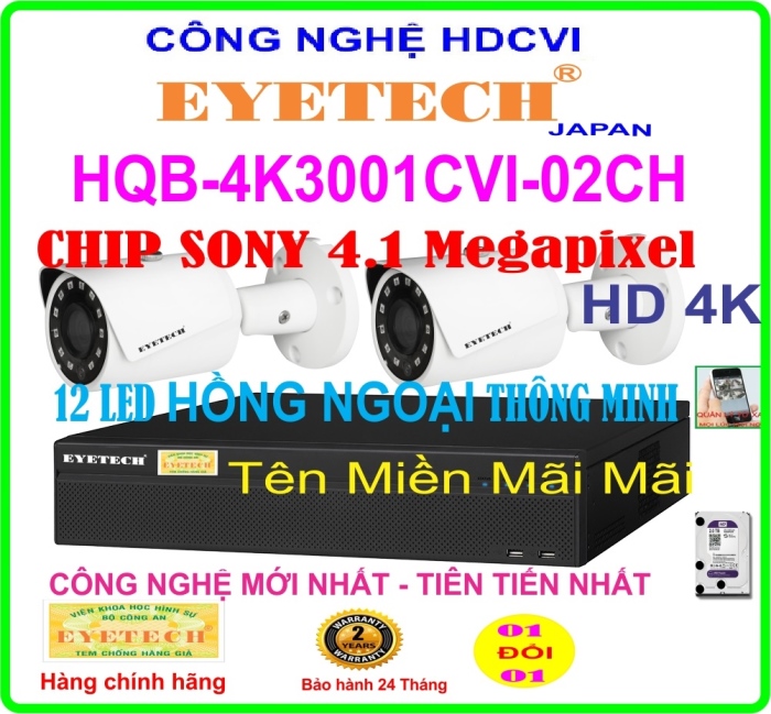 - 02 camera hồng ngoại lớn độ phân giải:4.1 Megapixel(HD 4K) sử dụng Chíp 1/3 SONY(Made in Japan)cho hình ảnh sắc nét, rõ đẹp độ bền cao.
