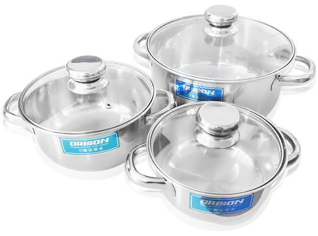 Bộ 3 nồi inox ba đáy Orison OR-39DT được làm bằng inox chịu nhiệt tốt, không gỉ và dễ chùi rửa. Chất liệu cao cấp bền đẹp và không chứa thành phần độc hại cho sức khỏe